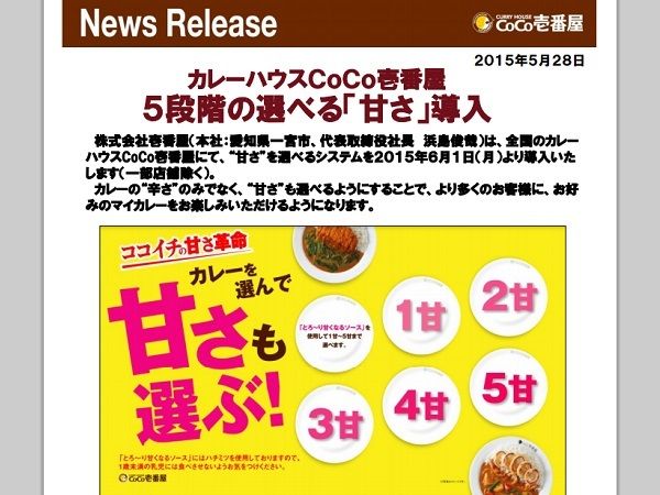 カレーハウスCoCo壱番屋が、6月1日から、“甘さ”を選べるシステムを導入したことが話題だ(一部店舗除く)。