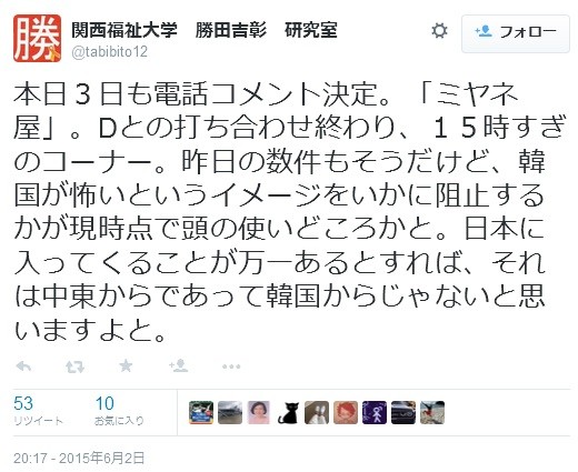 この人TBSラジオでもおとといぐらいにコメントしてたよ