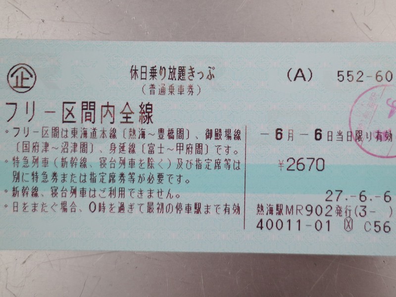 お金があれば小田原からは新幹線で行くのが楽だし早いけど、それはそれが好きな人に任せて、私は熱海駅で休日乗り放題きっぷを購入します。
