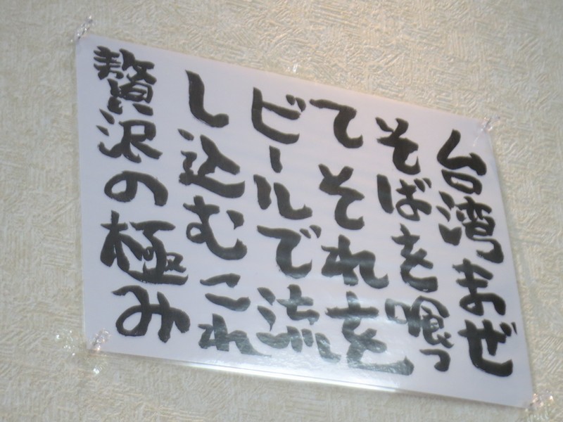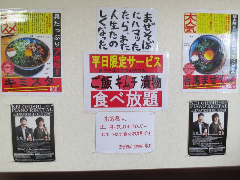 待合席には多くのポップが貼られていて、その中の一つに『他店のまぜそばとは違い「本物」の台湾まぜそばです。』と書かれています。