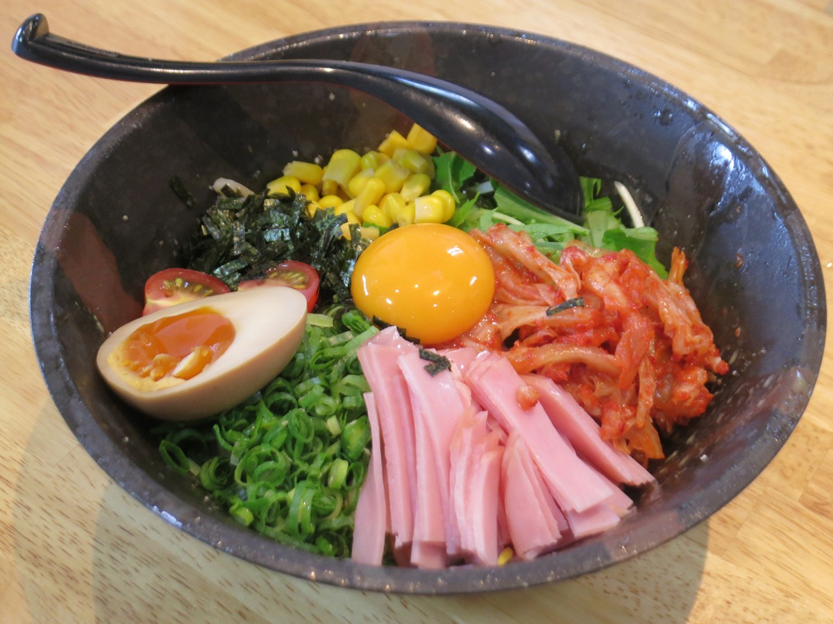 タレは台湾まぜそばの醤油ダレベースですが、冷やしということでアレンジし、辛しマヨネーズを加えて冷たい麺によく絡みます。