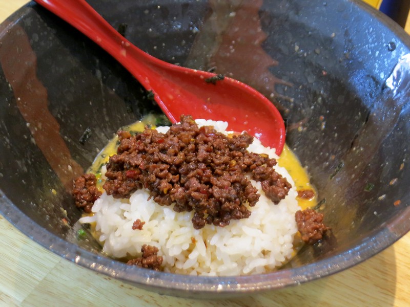 麺をほとんど食べ終わって、さて、追い飯タイムと構えると、「「追い飯にはこちらを」と、まるで後ろで見ていたかのようなタイミングで、台湾ミンチを用意してくださいました。