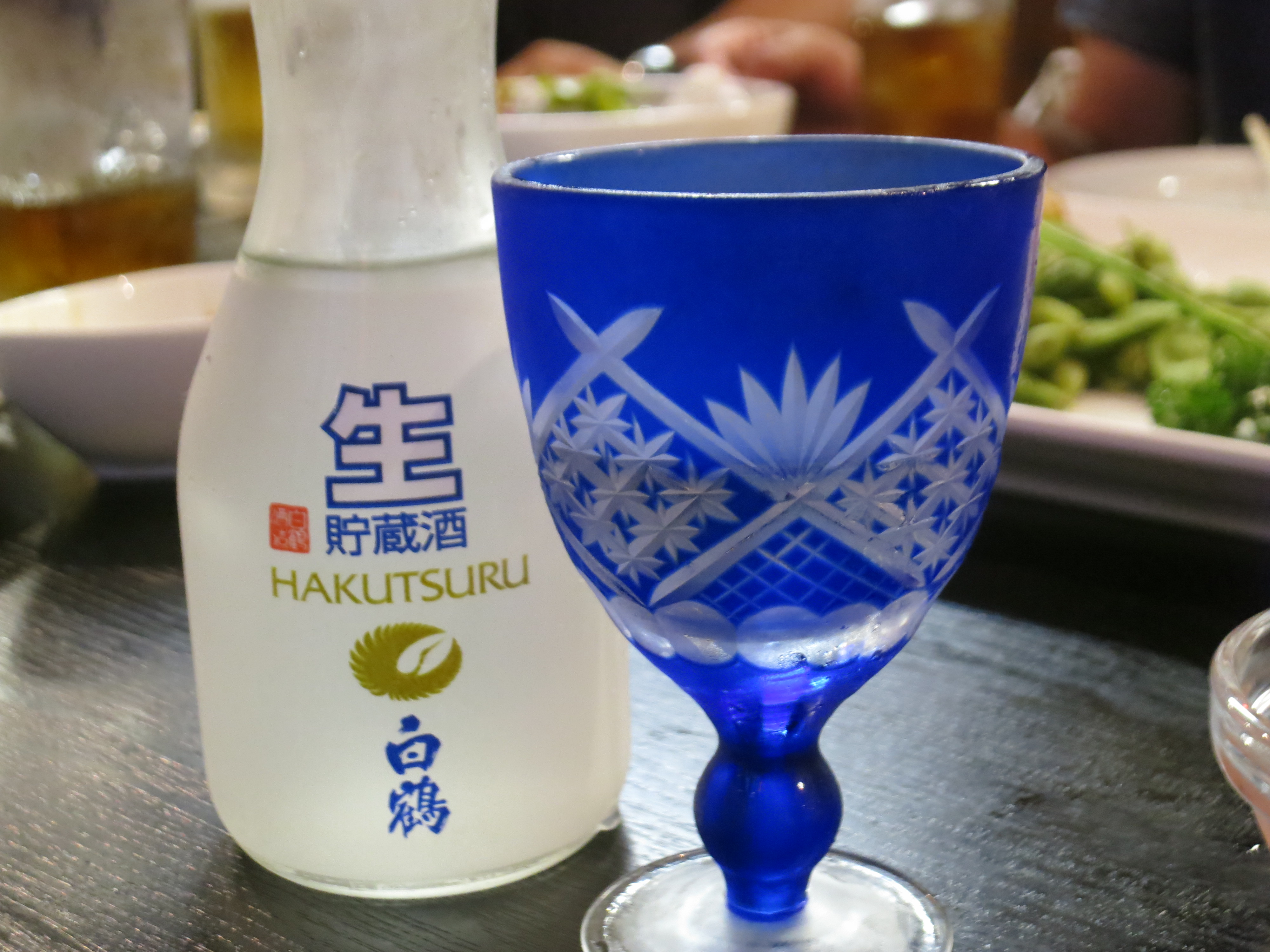 以前はこんな場所でも日本酒を飲んでいましたが、今夜は事情があって白鷹の冷酒、切子で頂いて意外と美味しい。