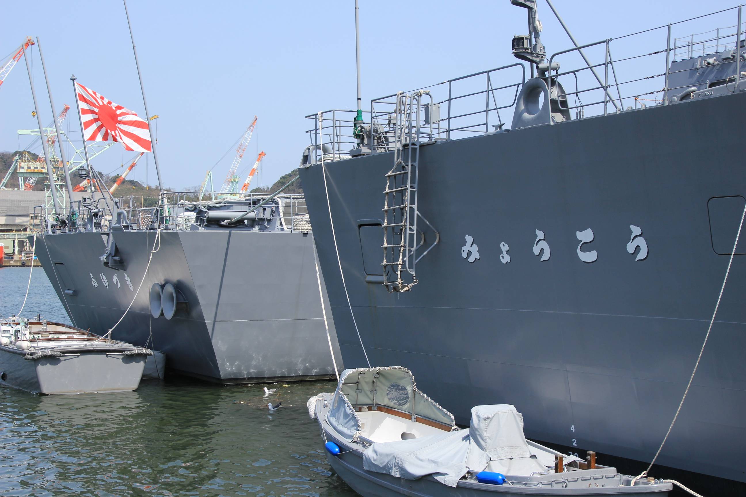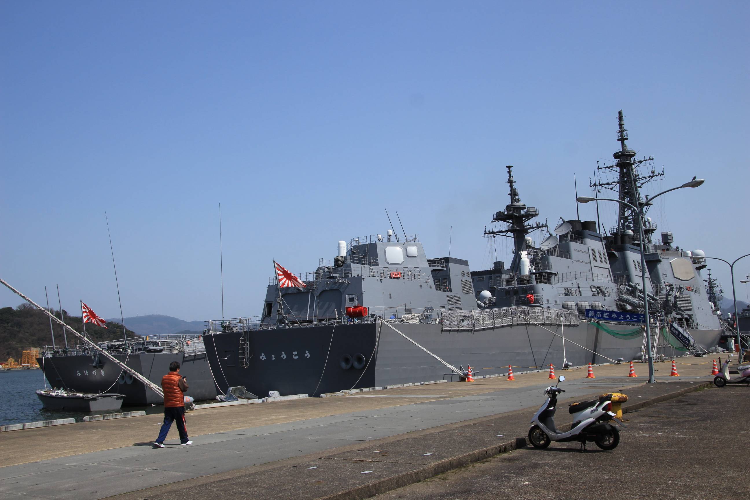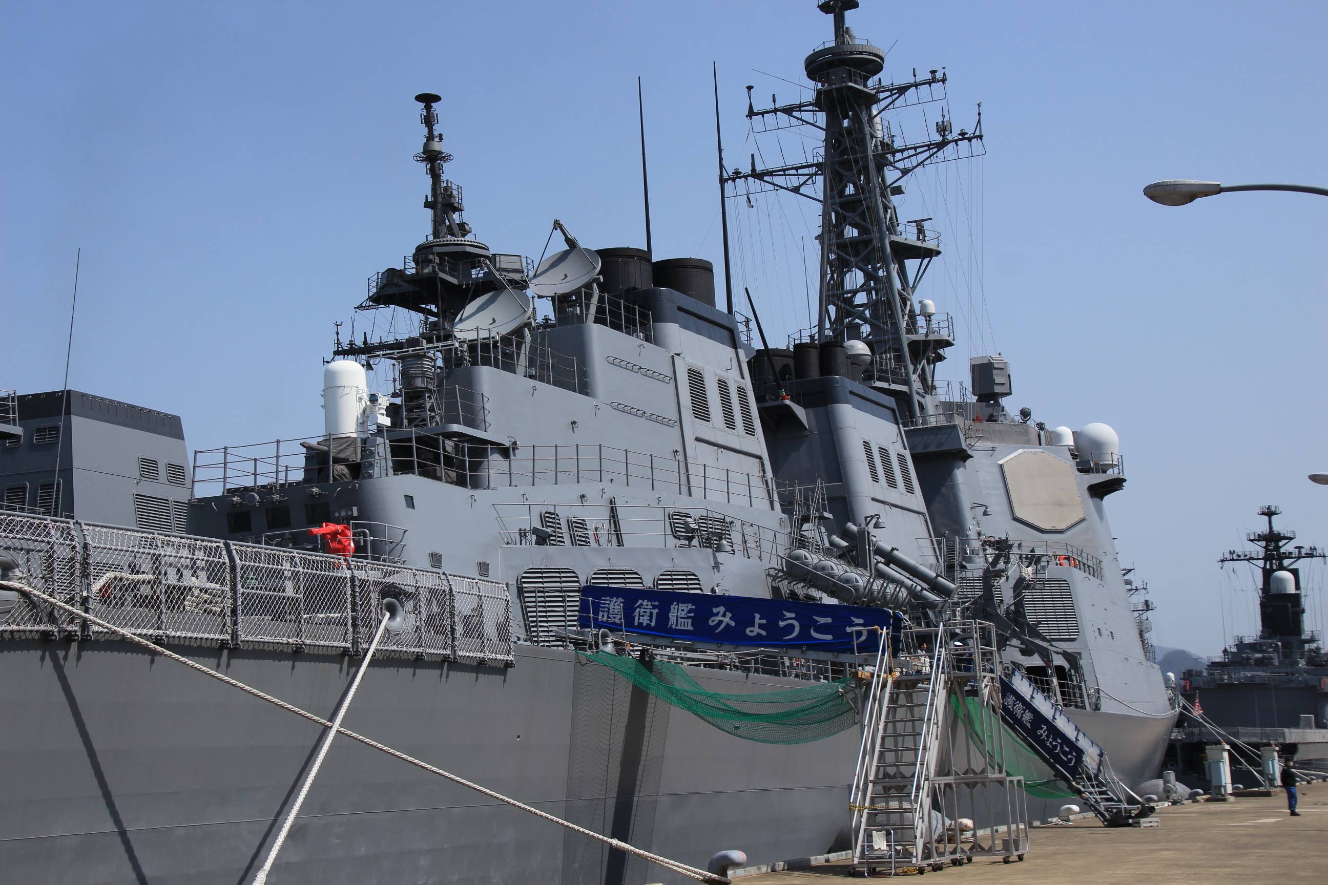 イージス艦みょうこうと、奥にいるのはふゆづき