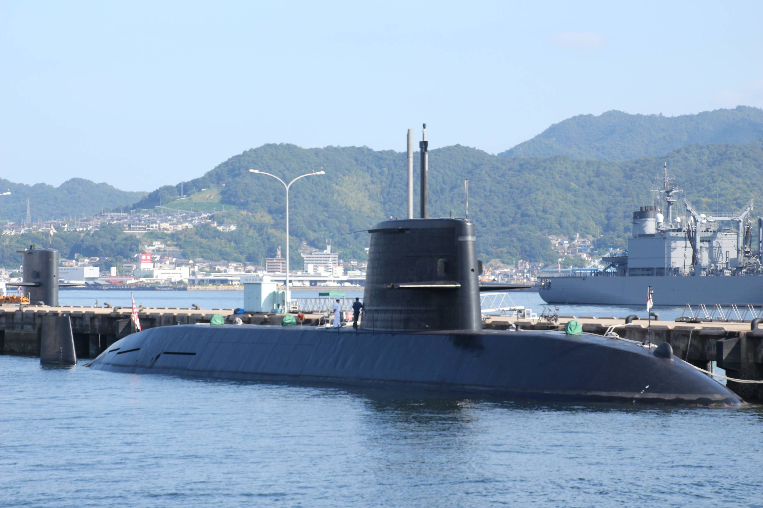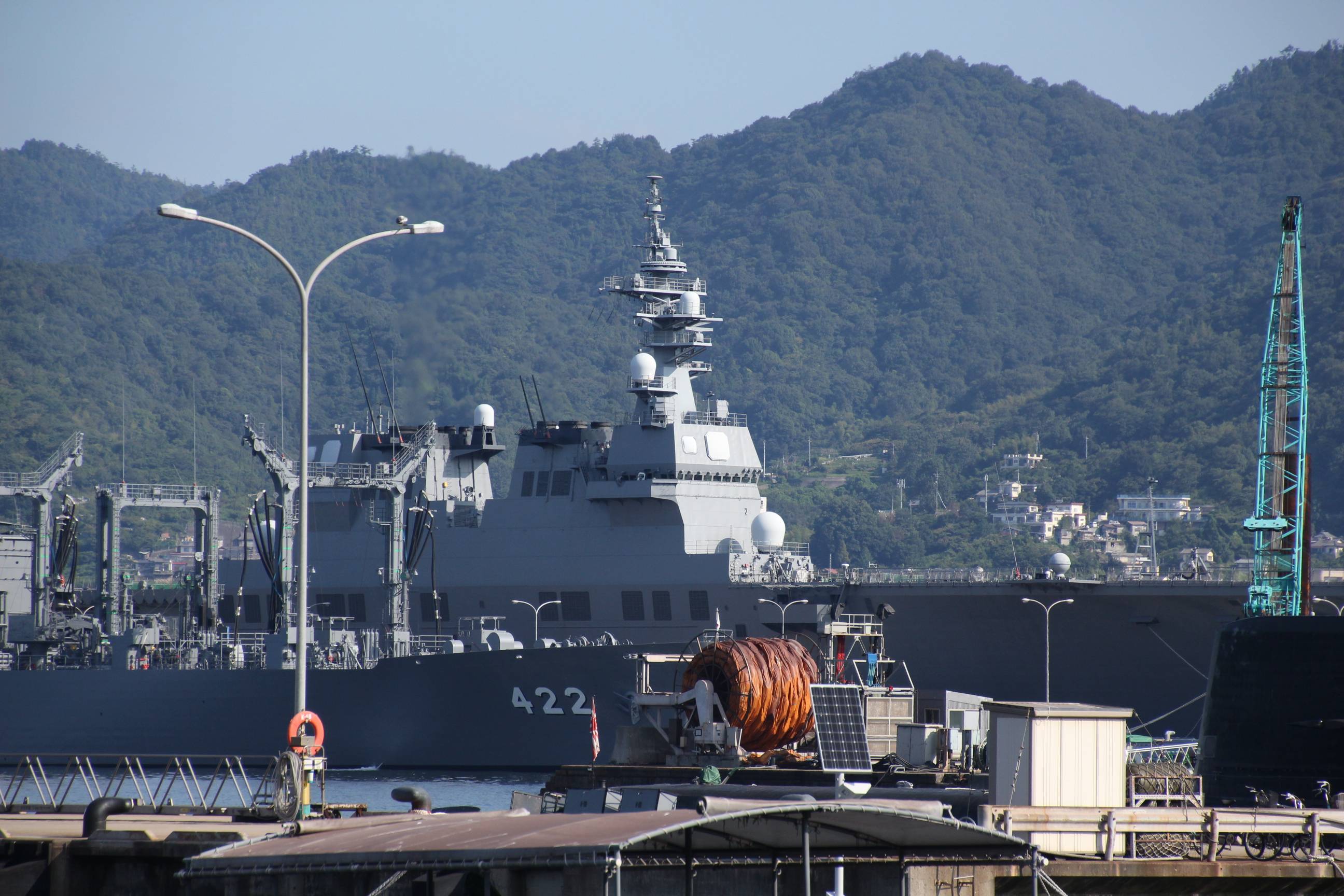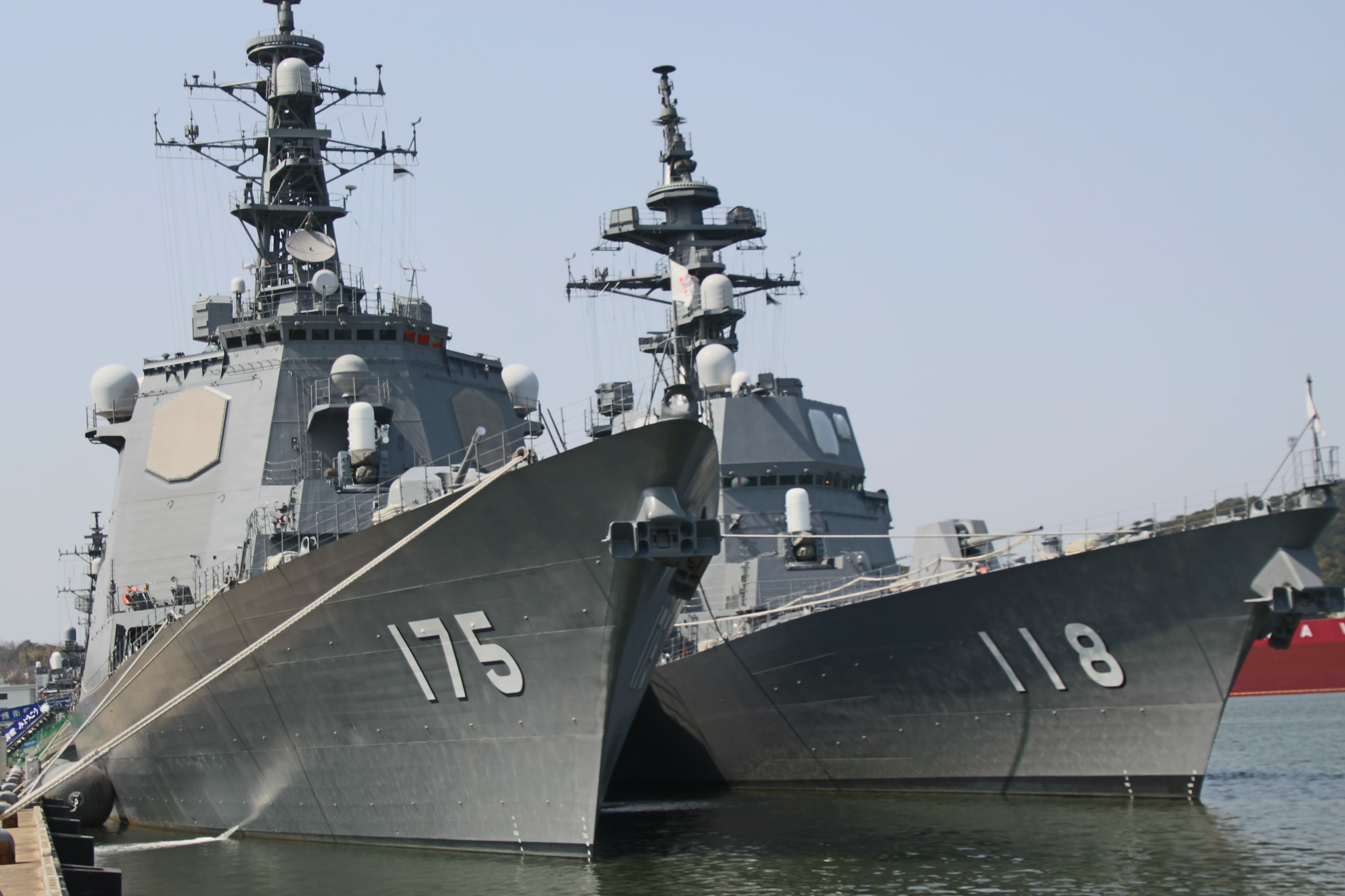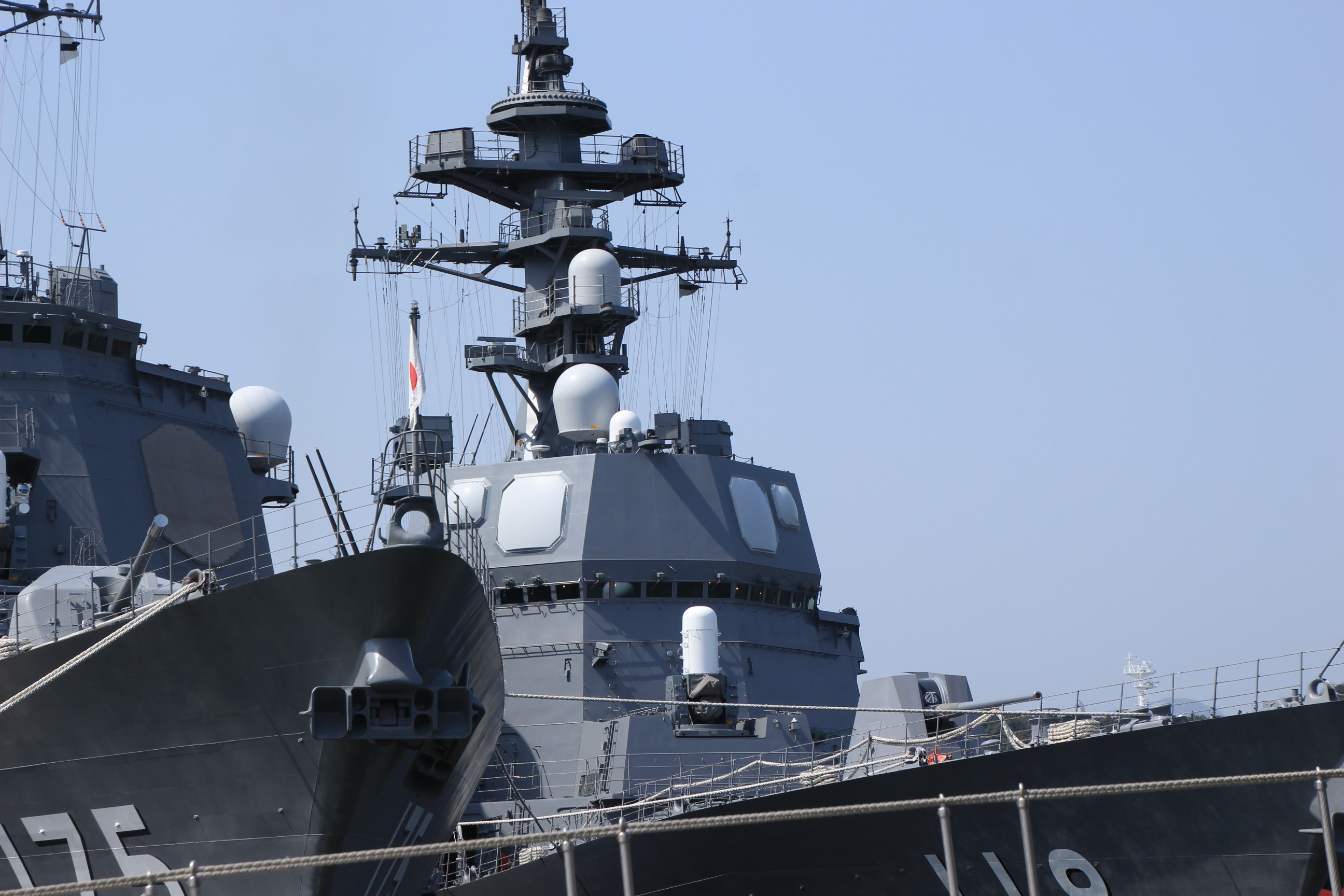 イージス艦みょうこうと、奥にいるのはふゆづき