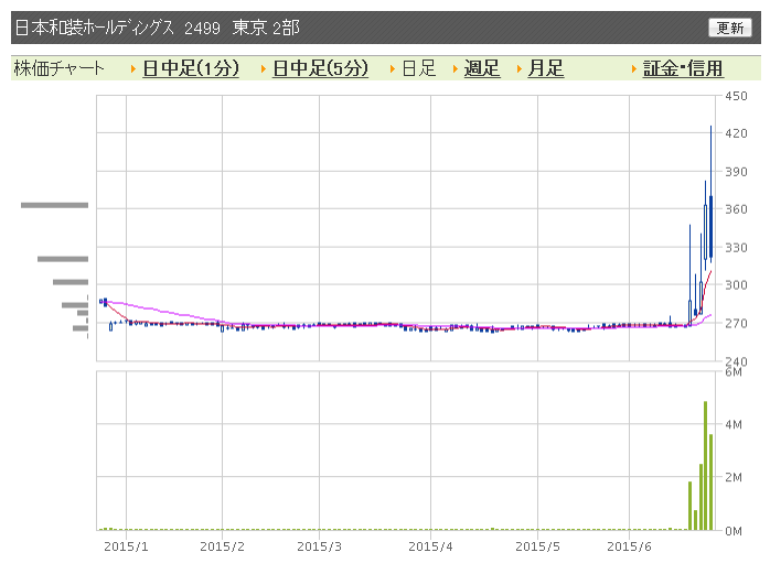 — おけら@臆トレ4545ディーラー (@okera1127) 2015, 6月 23「ストップ高の瞬間。しかも売気配なし!」