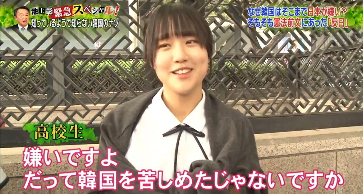 25:14あたりの女子高生。字幕が全然合っていないんだけど。韓国語では「日本は文化が多様で、外国人がたくさん旅行に行っていますよね」ぐらいのことを言っていると思うけど。 / 池上彰緊急スペシャル!知っているようで知らない韓国のナゾ https://t.co/CvIRwZMP8W