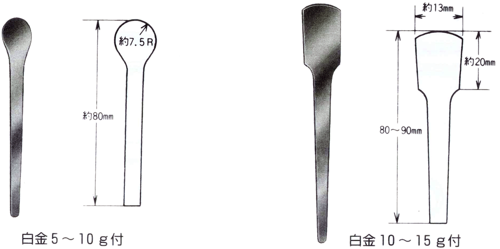 ■備考 白金器具の取扱いについては、その特殊な使用条件により、各種の附属器具がひつようになってきます。そこで必要な部分にだけ白金を用いたり、白金をかぶせて使用いたします。 なお、白金をかぶせる場合、かしめと、ろう付がありますが、かしめは特に高温に適します。