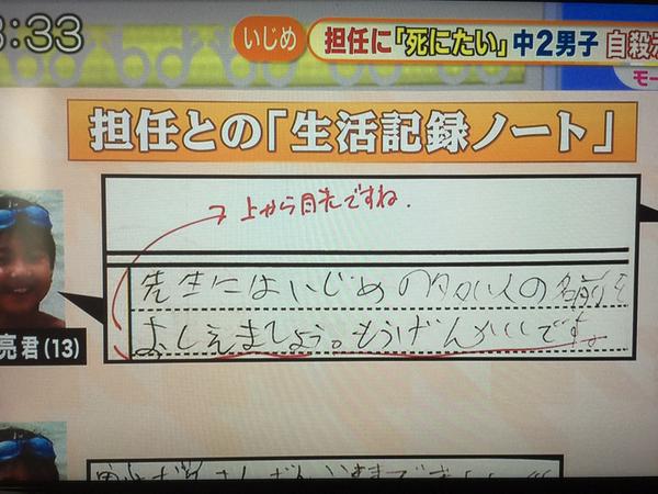 この生徒が自殺したのは担任のせいだな。しっかりと責任取れよ