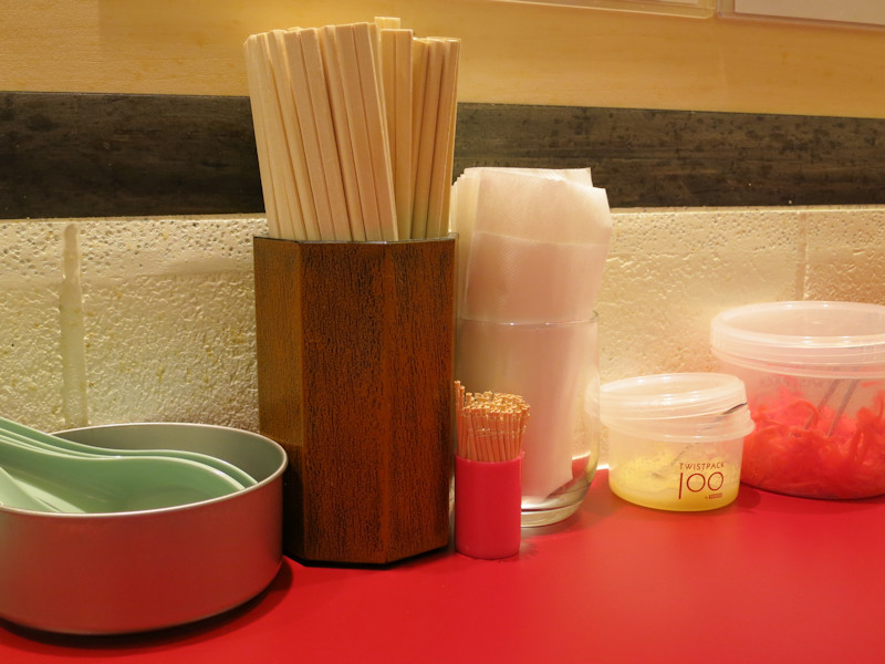 卓上にはおろしニンニク、紅生姜、個人的には長崎ちゃんぽんにはソースを掛けたいのですが、無いのであれば仕方ありません。