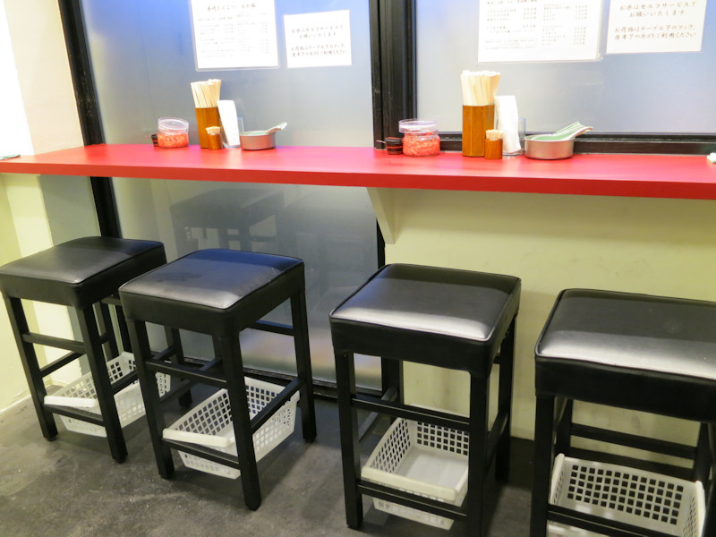 券売機で食券を買って店員さんに渡し、壁向きのカウンター3席と4席の内、空いている方に座ります。