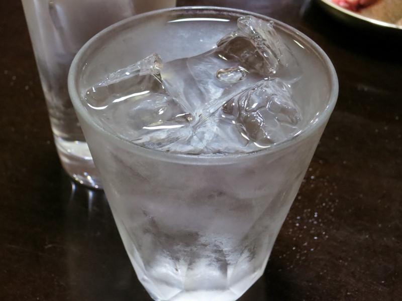 焼酎の銘柄は特に指定せずにお任せで、グラスの氷がやけに少ないけど、酔っぱらっているせいだろう。