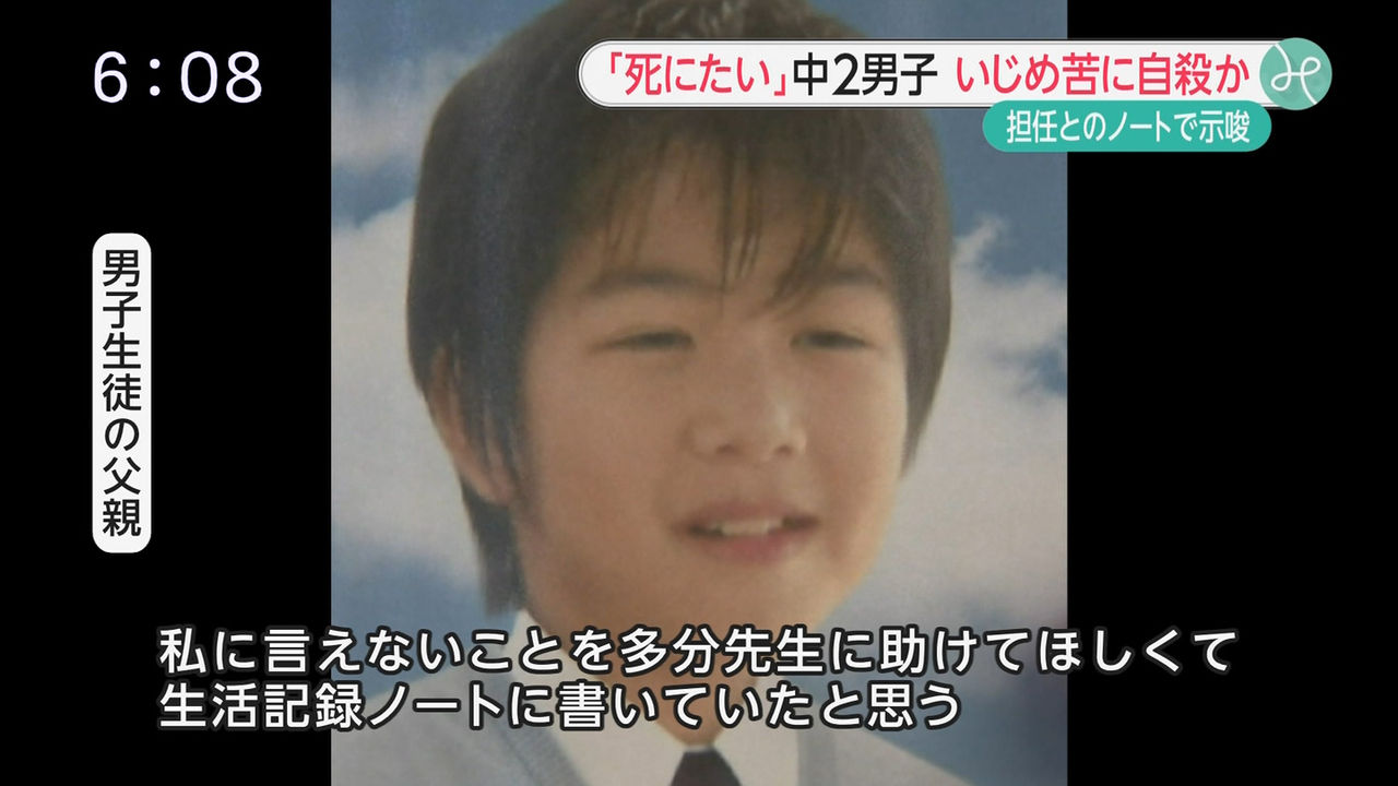 亮君は1年生の時から学校に提出する「生活記録ノート」でいじめの事実を訴え、「死にたいと思ったときがけっこうありました」と記していたが、2年生のクラス替えでもいじめ生徒と同じクラスにされた。「死んでもいいですか」「もう死ぬ場所は決まっているんです」などの記述も、担任は校長や周囲に報告せず、生徒の命にかかわる情報が共有されなかった。父親にも話がなかったという。