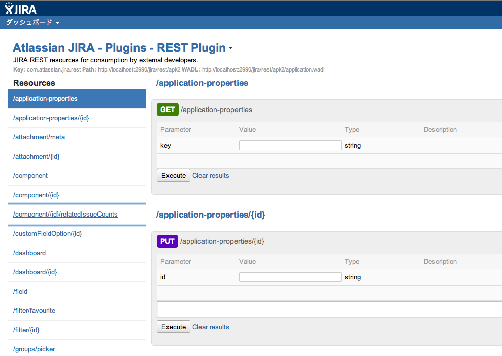 Atlassian SDKに含まれるJIRAプラグイン。各種REST APIをブラウザ上から試すことができます。
