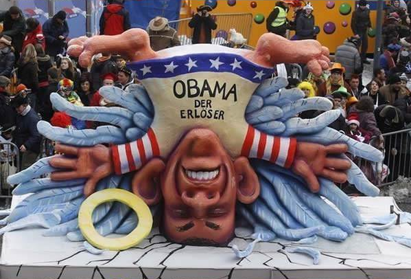 疑問に思ってるアメリカ人の為に言っておくと、そのオバマの山車は彼の事を負け犬と呼んでいるわけじゃなくて「救世主オバマ」って書いてある。