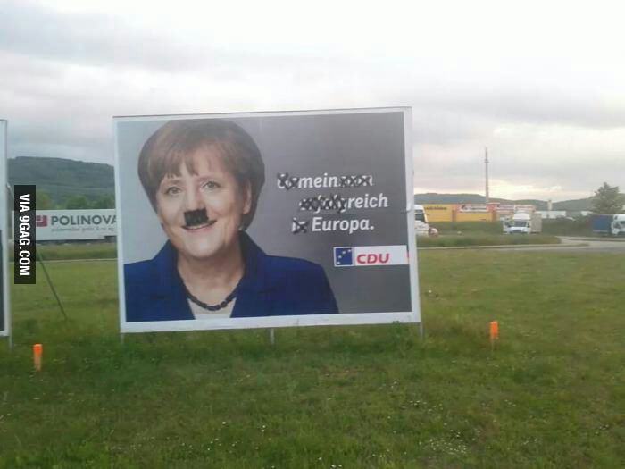↑それメルケルが媚びを売っている(Arschkriecherei:誰かの尻に入る)ってことを批判するもの。