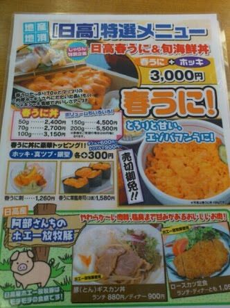 日高で山盛りウニ丼食ったが、1000円ちょいだったぞ