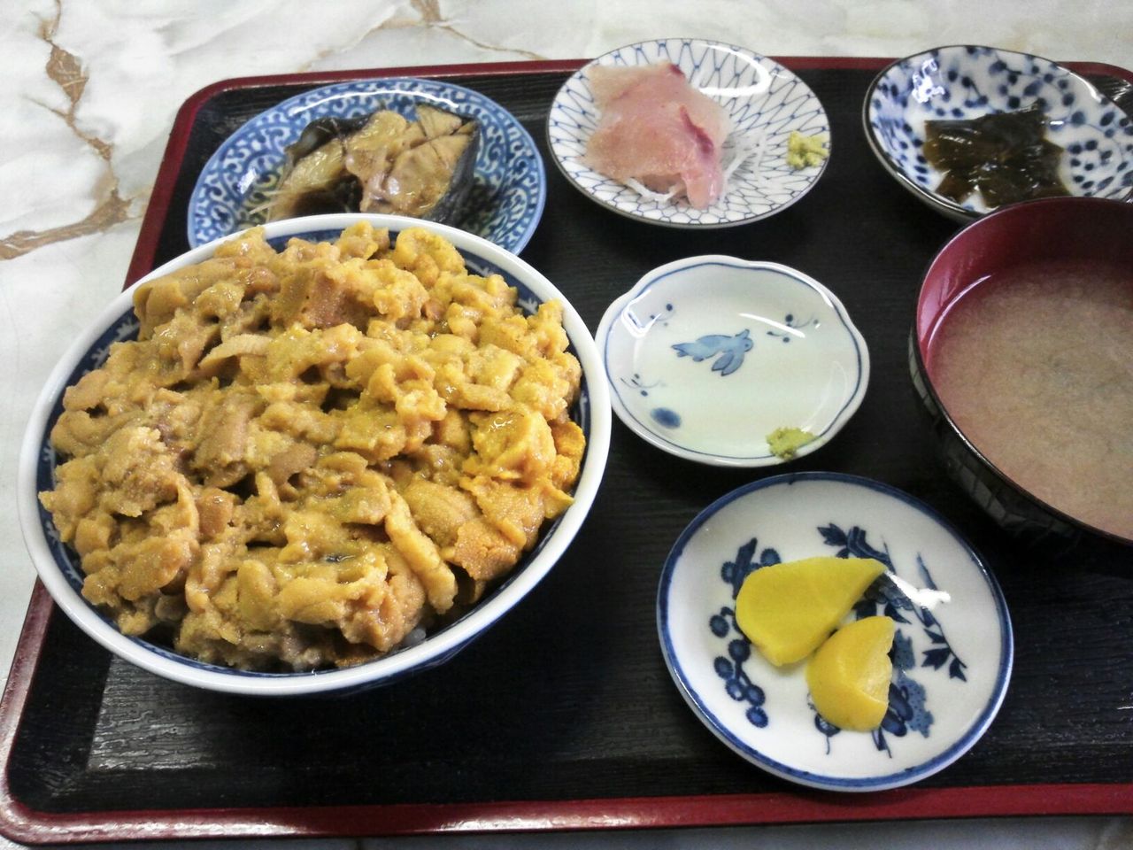 こちらはなんと、ウニ丼定食をリーズナブルに1600円という破格でいただくことができる。