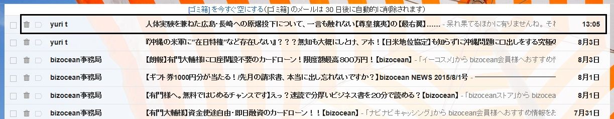 画像:当ブログで原爆投下についてのエントリーが上がらないことに愚を煮やした朝鮮人ストーカー工作員が茶々メールを寄こして来た!