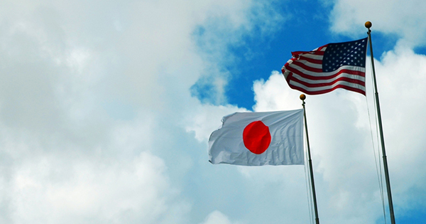 アメリカをバックにして