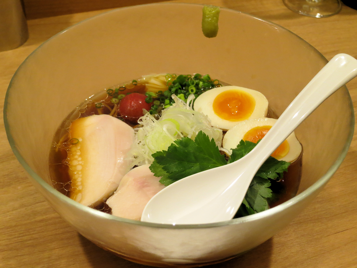 正直、ここまでスープと麺が美味しいとトッピングはなくてもいいんだけど、鶏チャーシュー、大葉、プチトマト等々、とても美味しく頂きました。