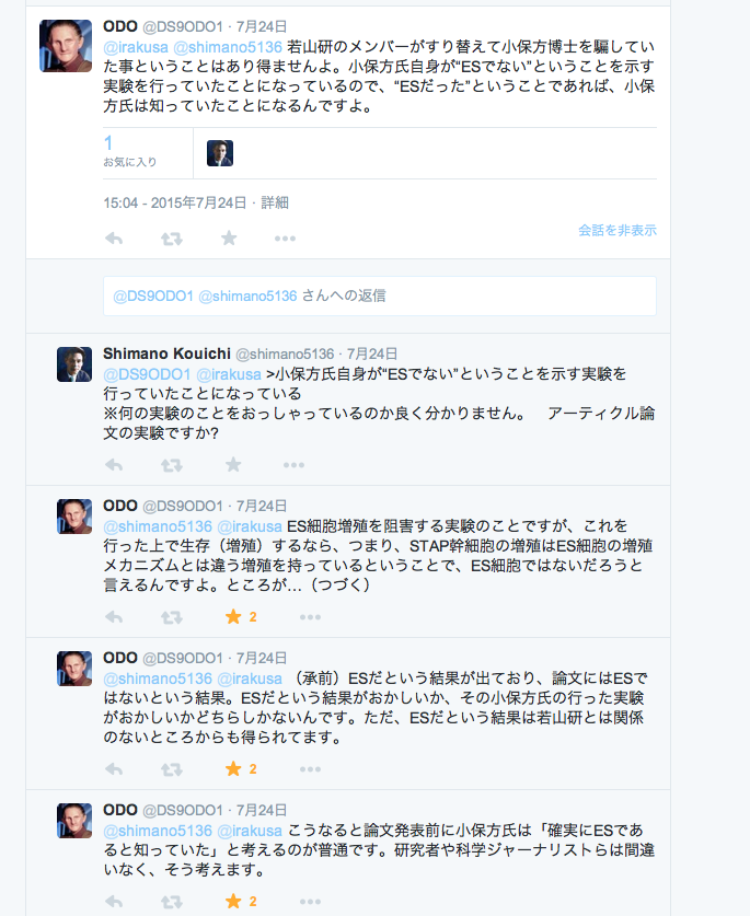 『ODOさんの小保方博士がES細胞だと知っていた証拠する発言のまとめ。』