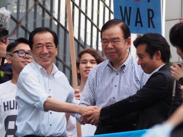 菅直人さんも登場!民主と共産と維新の党が同じ街宣車の上で手を繋ぐ。凄いことですよ!これマジで!
