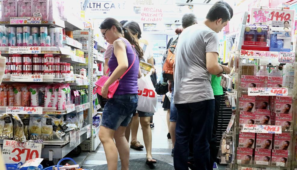 夜の買い物の中心は、何と言ってもドラッグストアだ。混雑する店内に入ってみると、中国人が行列をなしていた。