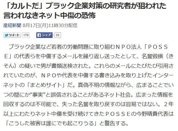 ブラック企業・労働問題の研究者に対する2chでの名誉毀損事件! ←ブログランキング応援クリックお願いします♪