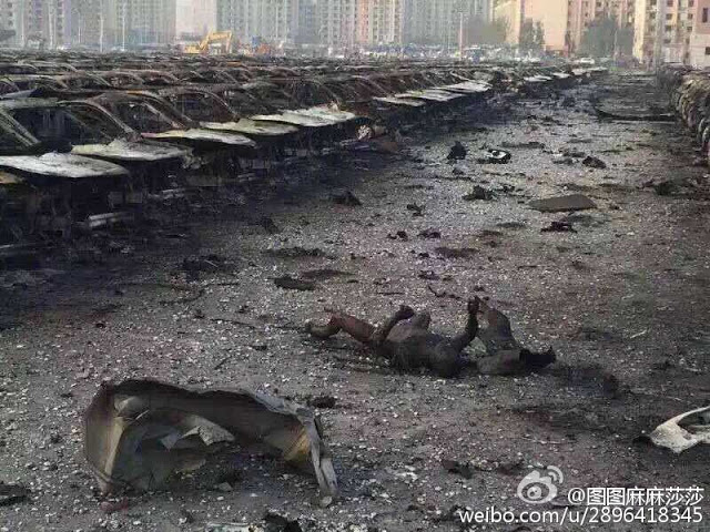 爆炸点距离民居只有400米,相隔一个停车场,车场里的千辆汽车全都被烧毁,金属的轮胎悬挂也烧成粉末,住宅区的居民恐怕劫数难逃。天津网友称,这个小区的人全部没了。一个小区最少也有数百人,惨烈程度可想而知。