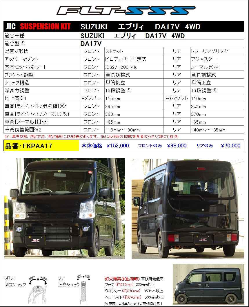 FLT-SSS  SUZUKI エブリィ 4WD    新規設定のお知らせです。