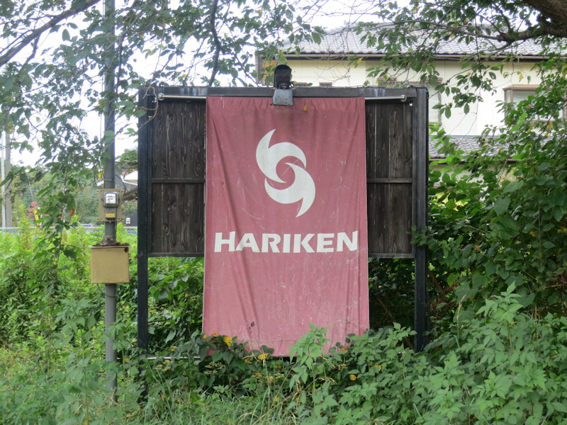グーグルマッブに導かれて車を塊に入れると、木々の中に「HARIKEN」と染め抜かれたタペストリーが「さあ、何屋でしょう?」と語りかけてきます。