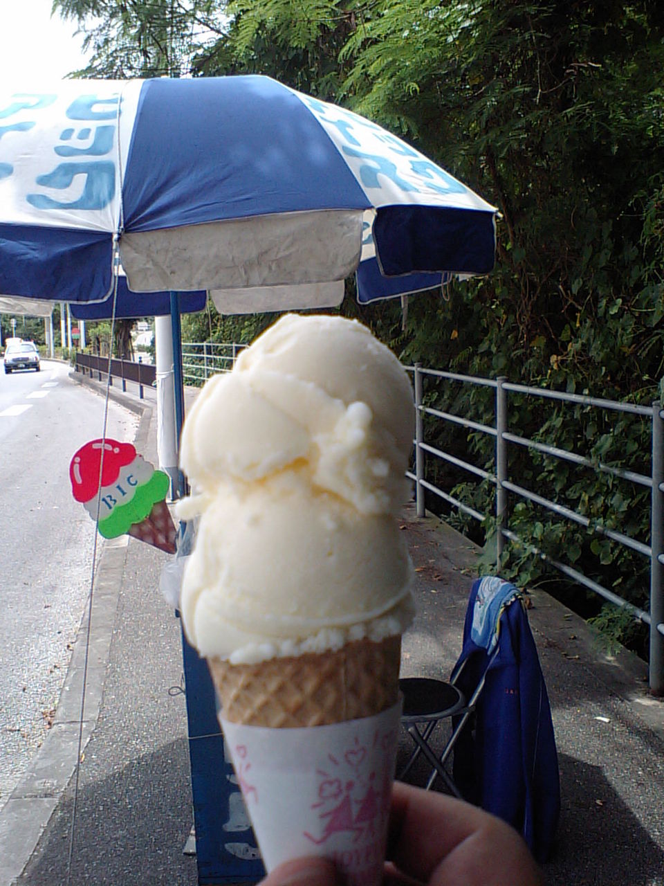 違うのは移動式なこと 高知の「アイスクリン」も道路沿いのパラソル