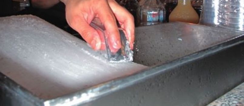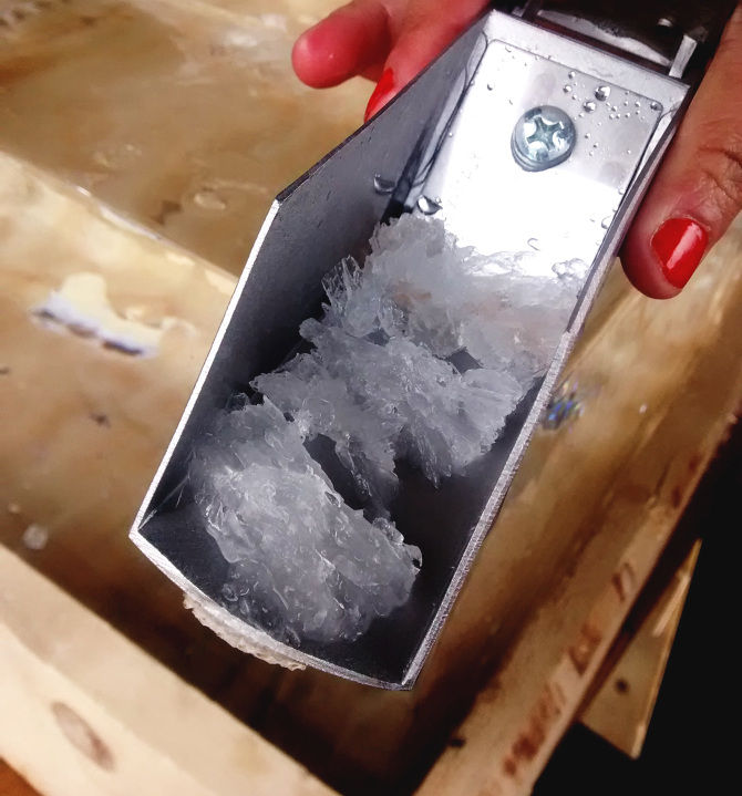 氷をスクレーパーで手動で掻き ココナッツ、チェリー、パイナップル