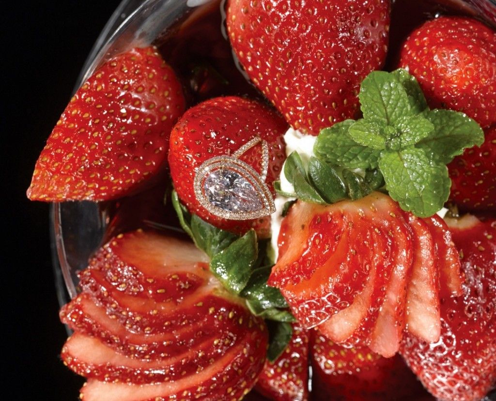 イチゴとバニラアイスメインのスイーツ 4.7カラットのピンクダイヤ