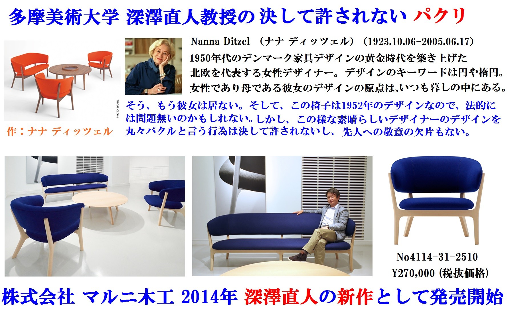 それと家具のキタニがNanna Ditzelのライセンス販売してるのでマルニ木工訴えられるんじゃないの?