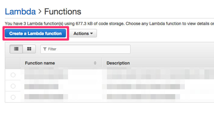 通知を受けて手動でIPレンジを更新するのもいいですがここはLambdaでサクッと自動化するのがいいかと思います。Lambdaで新しいFunctionを設定します。