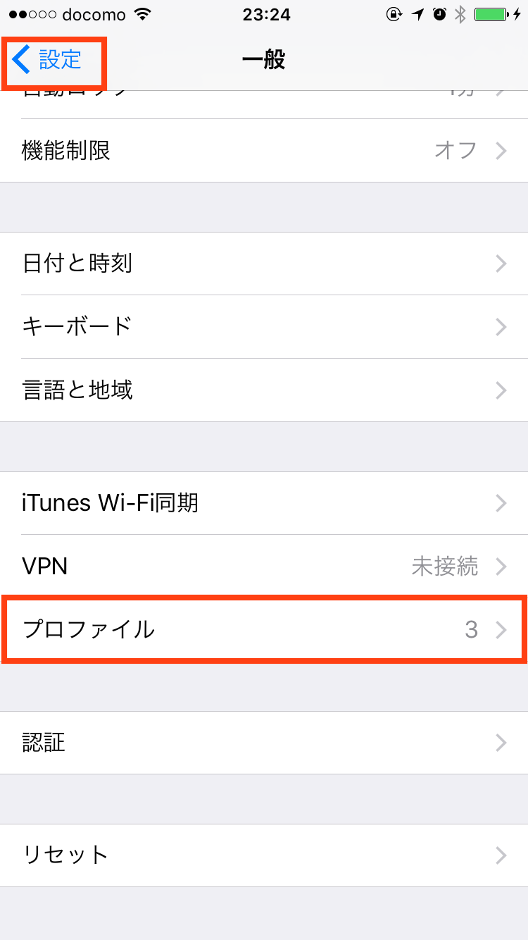設定 > 一般 > プロファイル