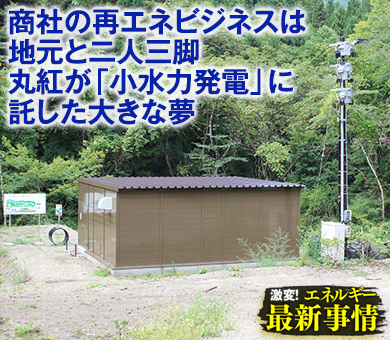 その施設とは、総合商社の丸紅が手がけ、今年4月に運転を開始したばかりの小水力発電所「花の郷(はなのさと)発電所」である。小水力発電とは、農業用水や河川の高低(落差)を利用する小規模な水力発電のことだ。