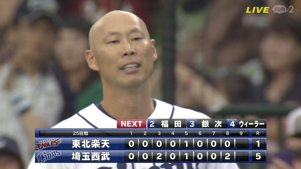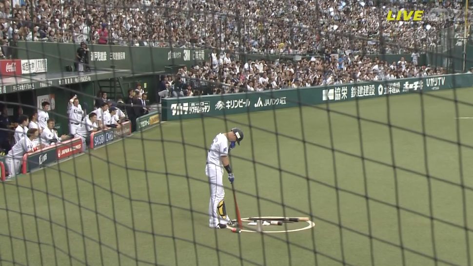 栗山が四球を選び8回表に守備に入っていた稀哲に打席が回る!