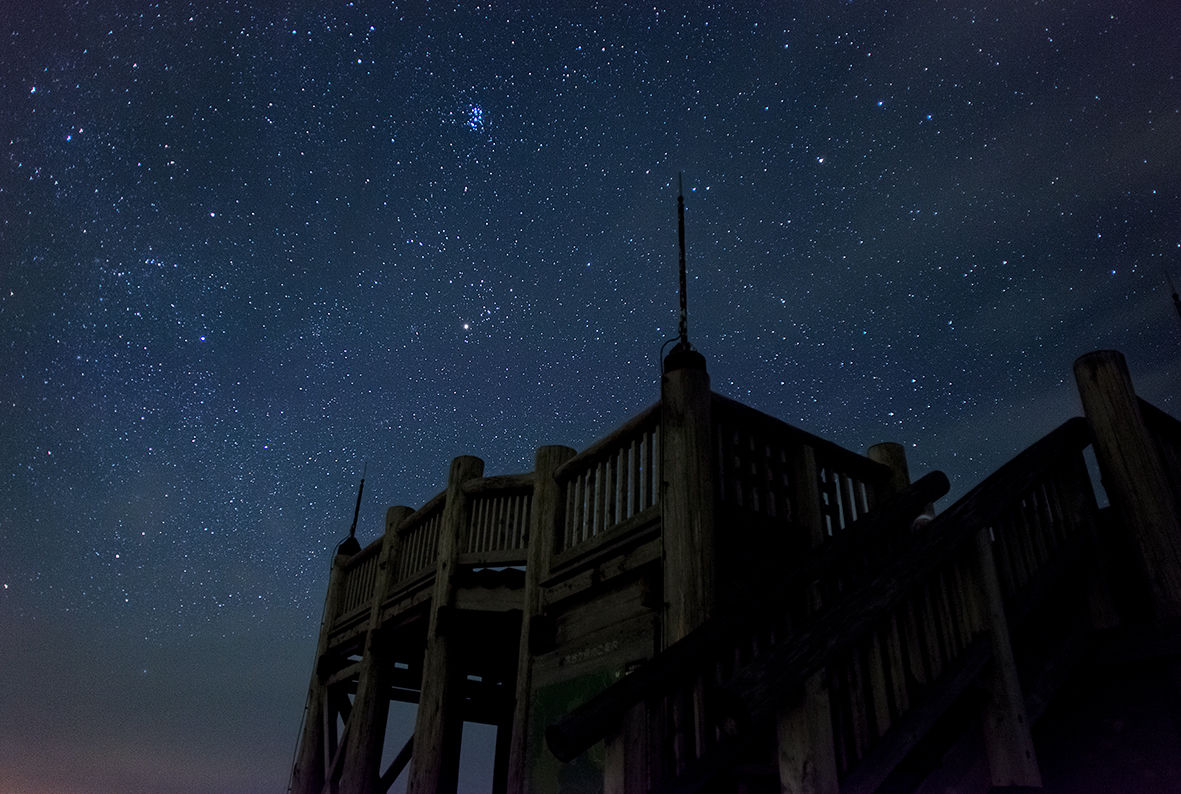 展望台をバックに星空を撮影