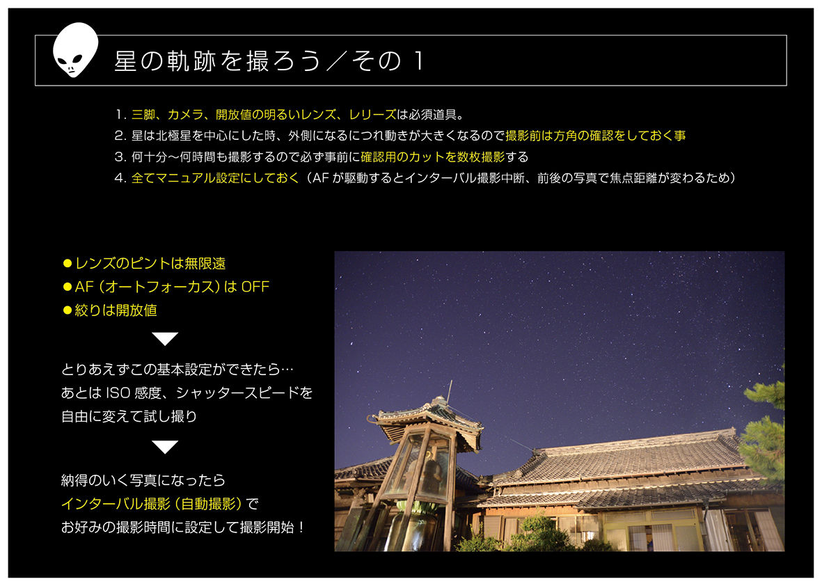 星の軌跡は何十枚も連続撮影して後から合成してるよ