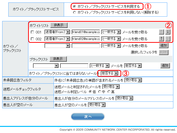 | ①【ホワイト/ブラックリスト設定】 |