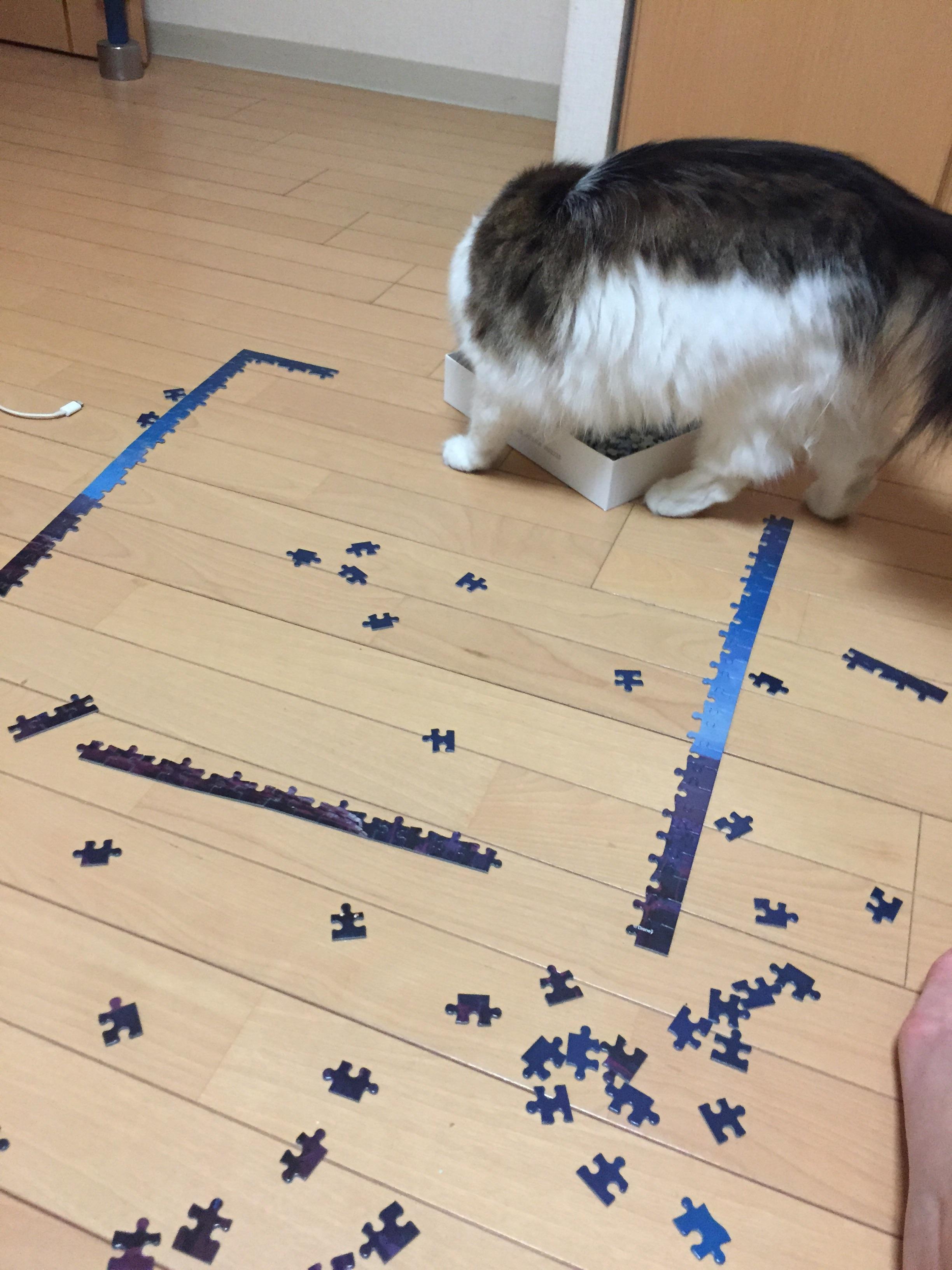 最近はジグソーパズルを壊すのが好きなご様子