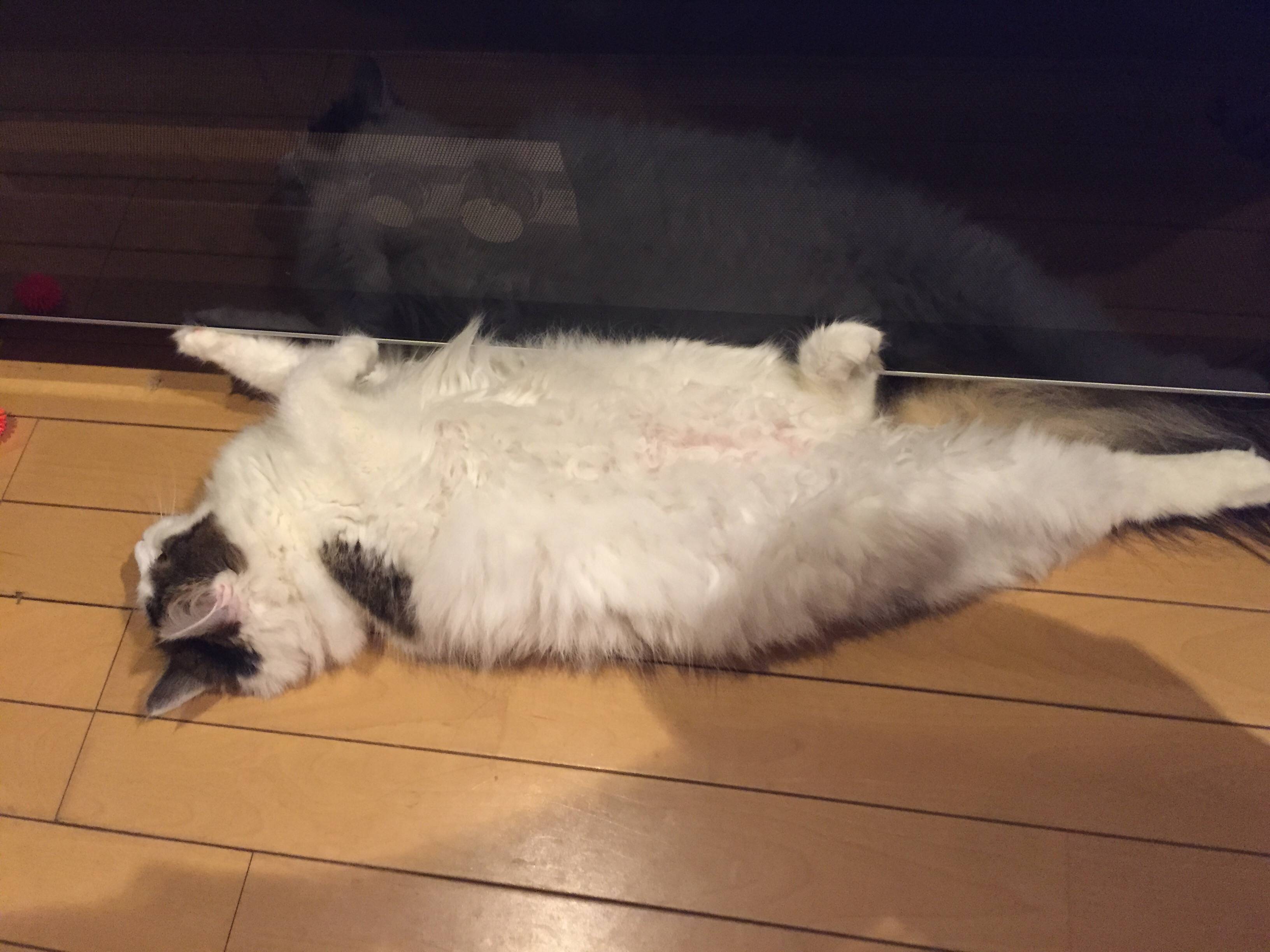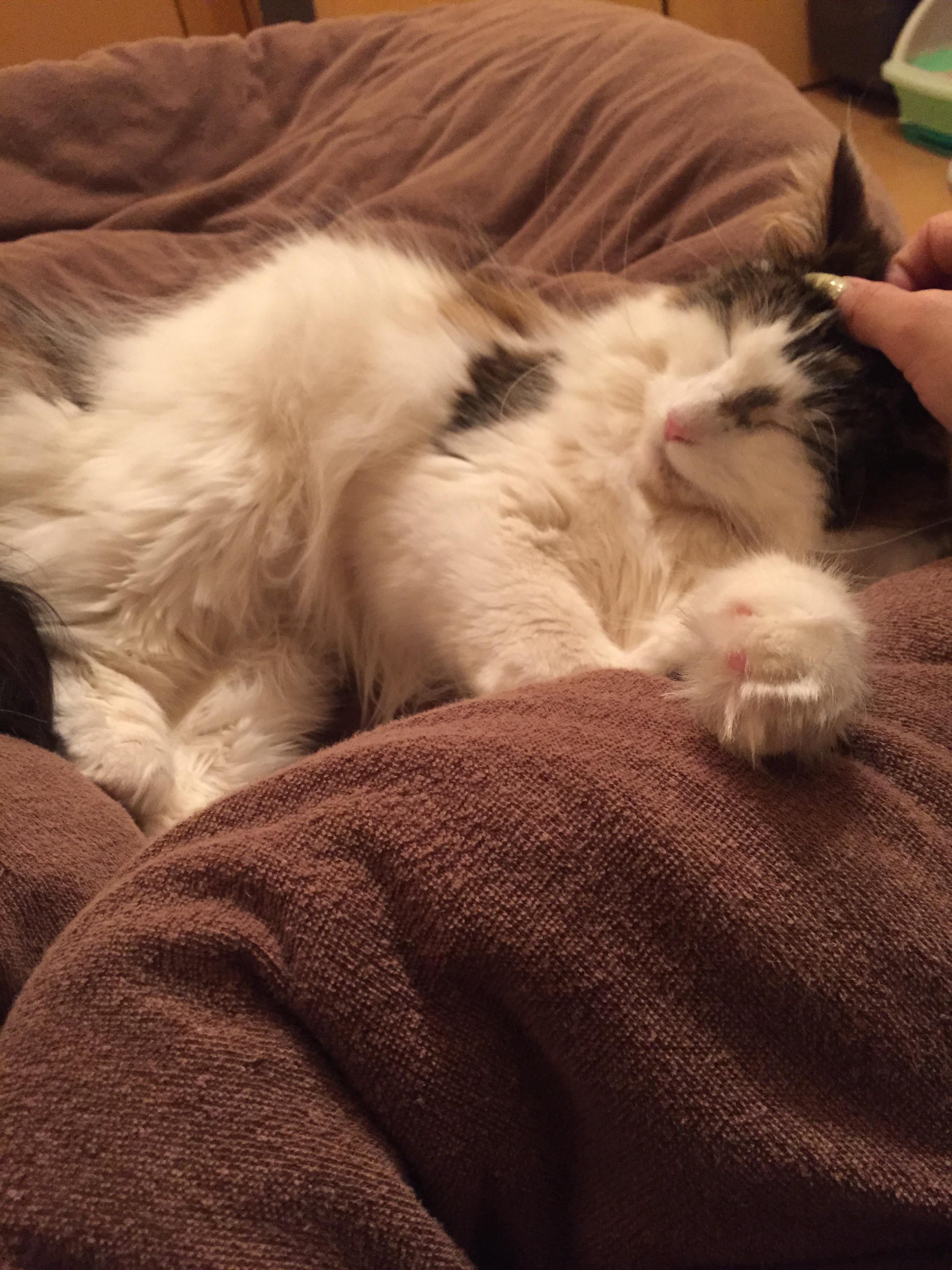 うちの猫はお腹撫でるのはダメだけど枕にされるのは平気らしくお腹に顔うずめてモフモフしても大丈夫だわ