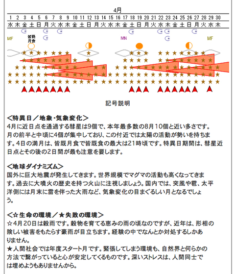 シャク暦を見る限りでは、今週の金曜日までは地震トリガー日(▲)には指定されておらず、今週末から下旬にかけてが要注意日となっています。