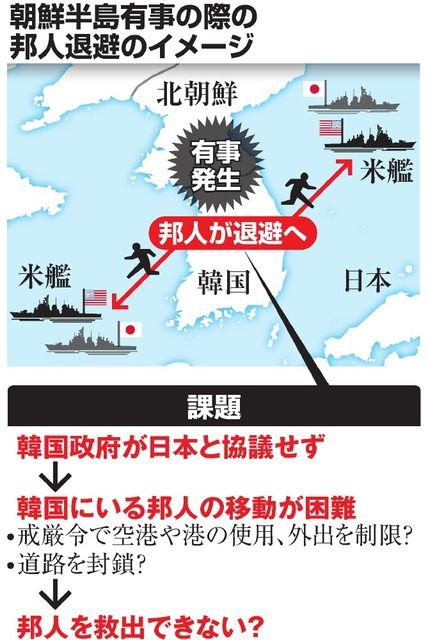 関連記事:朝日新聞<邦人退避、協議応じぬ韓国 朝鮮有事で想定、安保法審議でも言及 冷