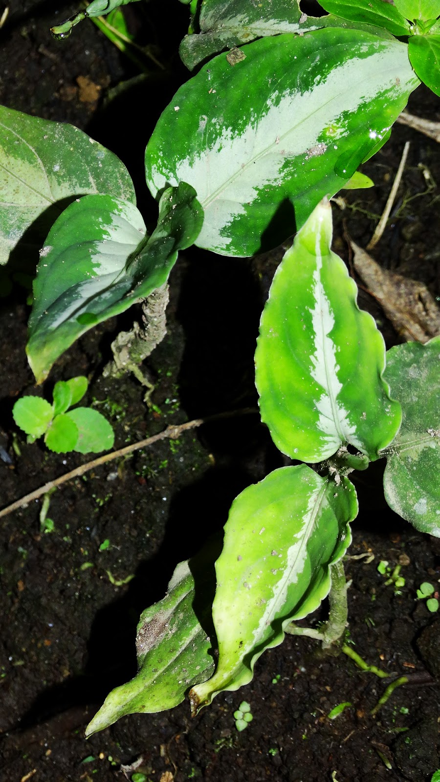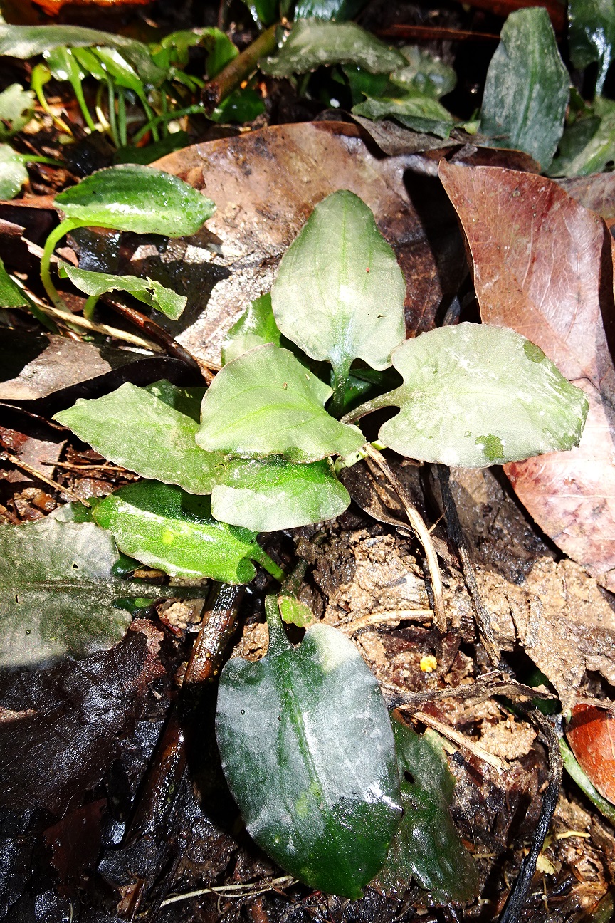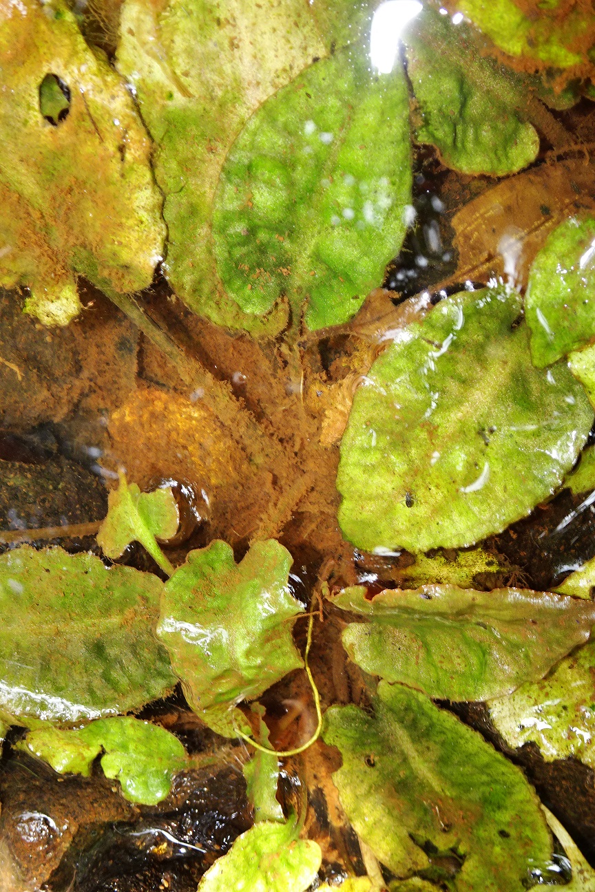 水上個体群は普通の葉色ですが、下のような黄色い斑点を有する小群落もありました。