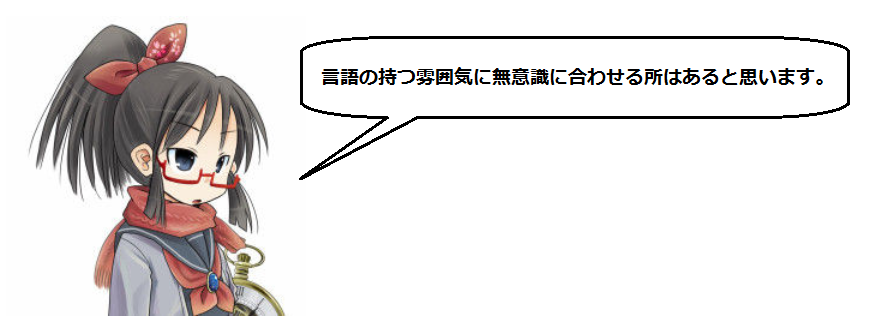 そう考えると、「言語ごとの発音特性」が「話し方」に影響を及ぼして、結果「性格」が変わっているように思えるんじゃなかろうかと思う