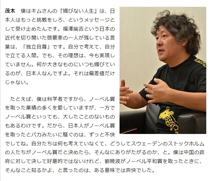 こいつの意見に同調するわけじゃないけど受賞するその瞬間まで知りもしなかったくせに受賞した途端日本人の誇りとか言うのは気持ち悪い